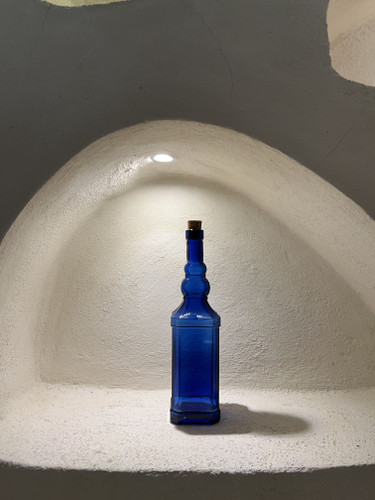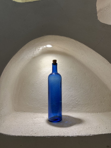 بطری شیشه ای مدل آب خورشیدی | کبالتی آبی | ورساچه یک لیتری | به همراه درب چوب پنبه