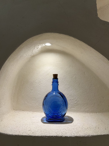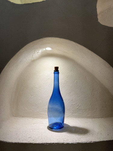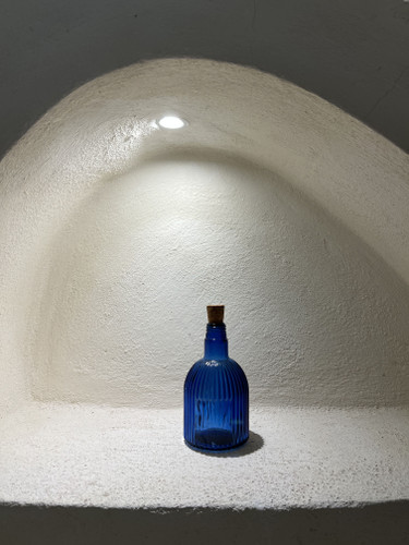 بطری شیشه ای آب خورشیدی | کبالتی آبی | مدل ایتالیایی یک لیتری | به همراه درب چوب پنبه