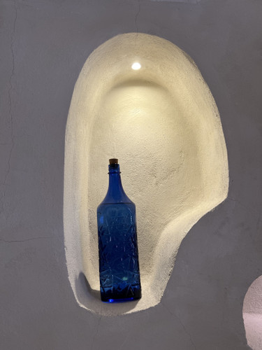 بطری شیشه ای مدل آب خورشیدی | کبالتی آبی | ۶ ضلعی یک لیتری | به همراهدرب چوب پنبه